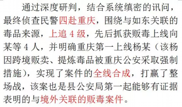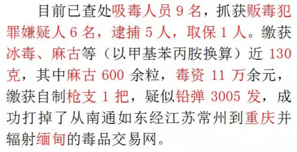 如东县局紧紧按照“打团伙、破大案、毁网络、抓毒枭、缴毒资”的侦查工作思路,切实加强专案经营和破案攻坚,做实线索核查、做细言词证据、做优串链成线。