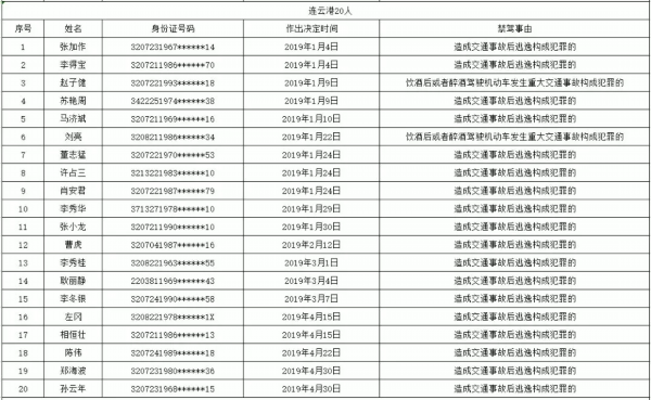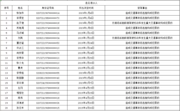 为持续提升全民交通安全意识、文明意识、法治意识,有效预防和减少道路交通事故,按照公安部交管局统一部署,江苏交警部门集中开展终生禁驾人员、突出违法车辆、典型事故案例、事故多发路段、高危风险运输企业“五大曝光”行动。此次,省公安厅交警总队向社会公开曝光今年1-4月份全省被终生禁驾人员235名。其中,连云港20人。