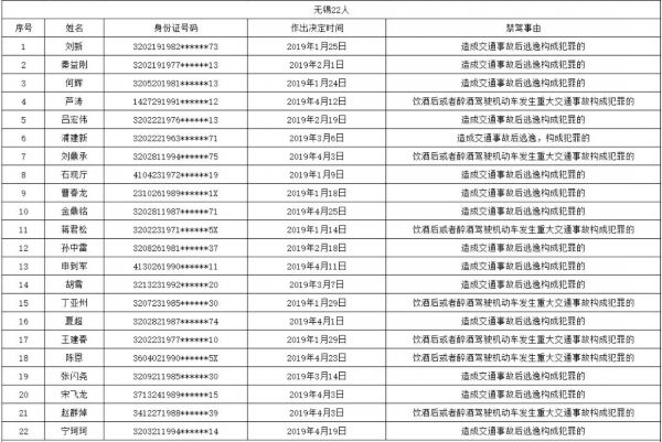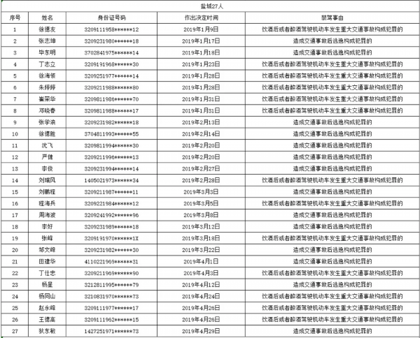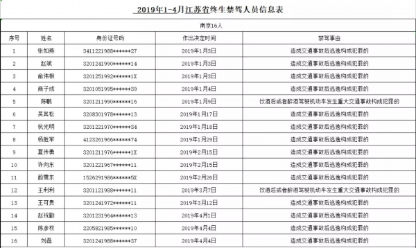 在江苏交警曝光的这份名单中,因交通事故后逃逸构成犯罪被终生禁驾的有162人,因饮酒后或者醉酒驾驶机动车发生重大交通事故构成犯罪被终生禁驾的为71人。另有2人同时存在交通事故后逃逸、醉酒驾驶机动车发生重大交通事故两种情形构成犯罪,而被终生限制申领机动车驾驶证。