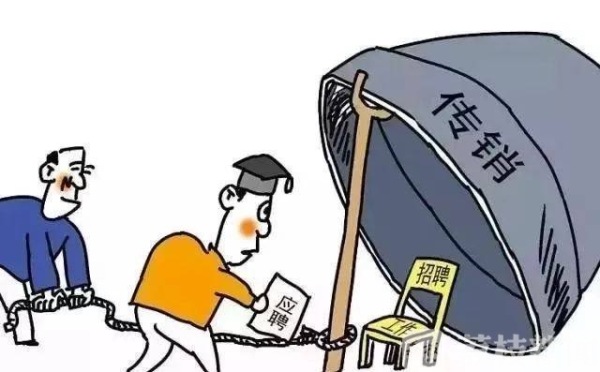 不法分子发布虚假招聘信息后,先是在电话上进行远程面试,然后要求异地培训,最后将求职者诱骗到传销组织里。传销公司一般先安排求职者以销售人员的名义上岗工作,然后公司收取一定的保证金,再让受害者去哄骗他人。而当求职者发现被骗要求解约时,却又被要求支付高额的违约金,还有可能被限制人身自由。