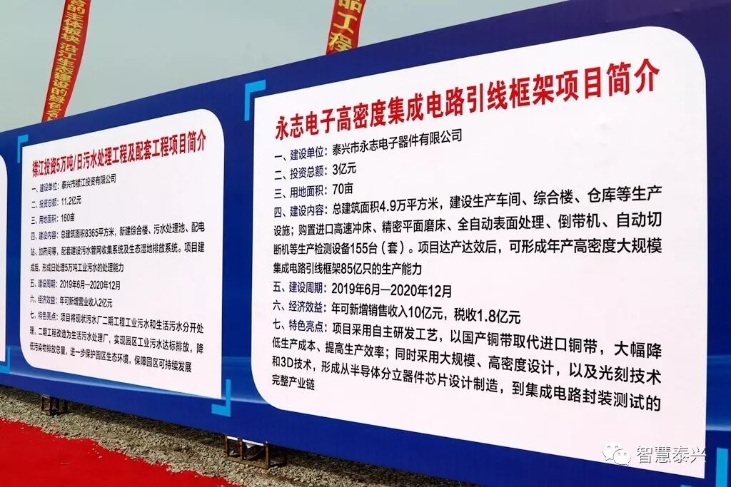总投资3亿元的泰兴市永志电子器件有限公司年产85亿只高密度大规模集成电路引线框架项目