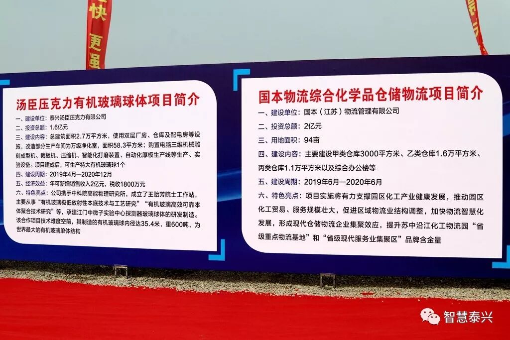 总投资1.6亿元的泰兴汤臣压克力有限公司江门中微子实验JUNO中心探测器用巨型有机玻璃球制造项目