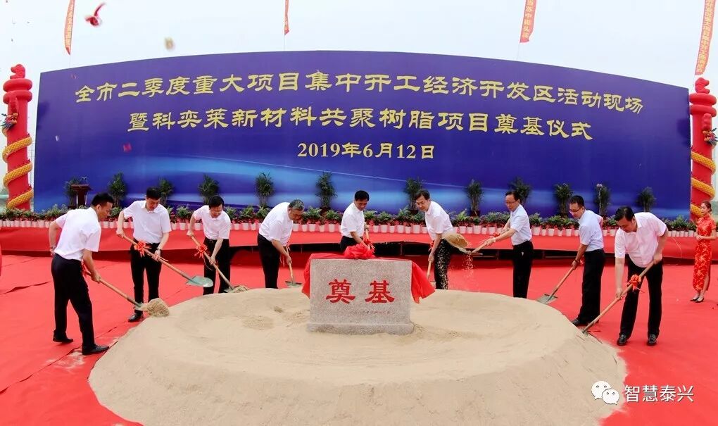 今天上午,我市在泰兴经济开发区科奕莱新材料共聚树脂系列产品项目现场举行二季度重大项目集中开工仪式,这既是集中展示全市招商选资新成果的制度性安排,也是持续掀起项目开发建设新热潮的又一次动员,对于推动全市经济社会创新转型跨越发展具有重要意义。