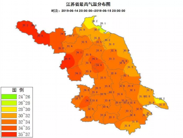 高温报告!今日江苏省西北部地区最高气温36℃左右