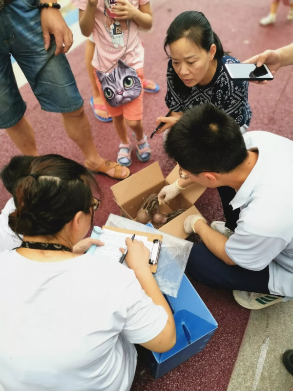 救护人员对小野猪进行了检查,通过脐带的状态判断它们应该刚出生没几天,然后对它们身上大量的蜱虫进行了清除,很快给小野猪用奶瓶喂上了奶,两个小家伙胃口很好,除了对外界表现的害怕、紧张外,各项生理指标一切正常。看着小野猪相互依偎,微微颤抖,工作人员给它们的窝里放置了加温灯,小野猪很快在暖和的灯下进入了梦乡。