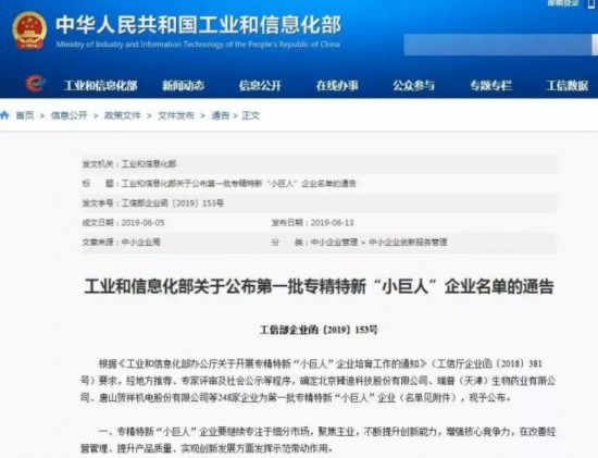 近日,全国首批专精特新“小巨人”企业名单公布