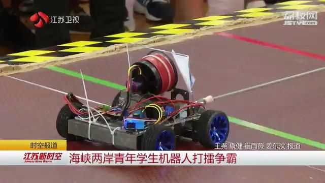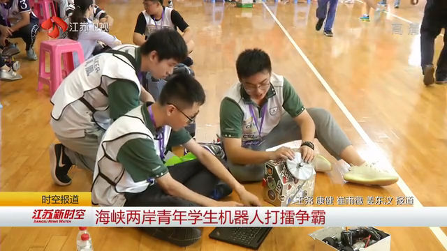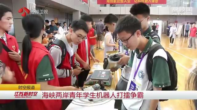 江苏台记者王尧:在第二届海峡两岸青年学生机器人擂台争霸赛的现场,机器人形态各异、各具特色。机器人由学生们操控,然后在同一擂台上进行激烈的角逐,考验的也是机器人的控制还有动力等各方面水平。
