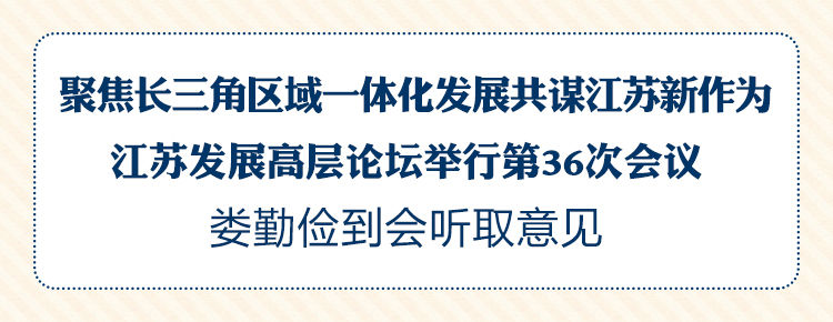 我苏网讯 7月11日,以“长三角区域一体化发展与江苏作为”为主题的江苏发展高层论坛第36次会议在南京大学举行。省委书记、省人大常委会主任娄勤俭,省政协主席黄莉新到会听取专家学者意见。