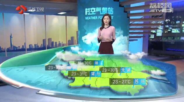 我们江苏,今天只有沿淮的部分地区出现了分散性雷阵雨,其他地区阳光灿烂。午后两点,全省大部分地区气温都上升到了30度以上。