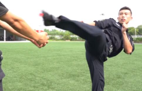 南京市公安局特警支队龙虎突击大队民警尹海涛,曾获得江苏省特警比武大赛散打项目第三名,他用一个漂亮的转身后摆腿动作,完成了踢瓶盖挑战。