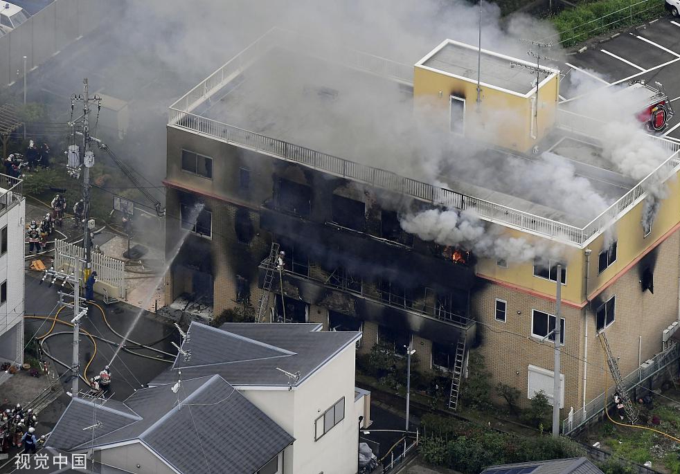 “京都动画”工作室火灾现场。图/视觉中国