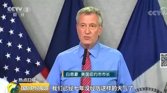 美国纽约市市长 白思豪:我们已经七年没经历这样的天气了,已经很久没有这样连续高温天气,情况非常严重。