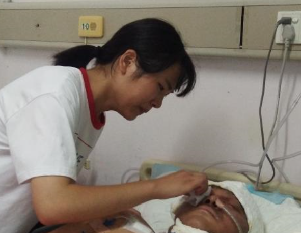 董可雯在医院照顾昏迷不醒的父亲
