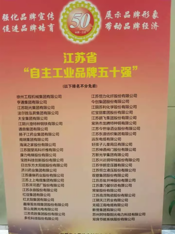 26日,江苏省“自主工业品牌五十强”宣传活动发布会在南京举行,会上,2018年度江苏“自主工业品牌五十强”榜单揭晓,50家苏企入选并获授牌,海安2家企业榜上有名,分别是鑫缘茧丝绸集团股份有限公司和江苏鹏飞集团股份有限公司。