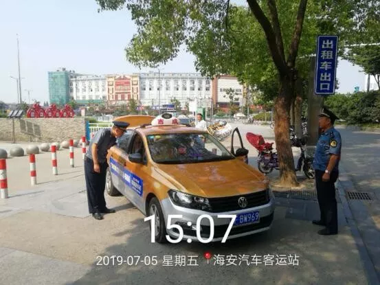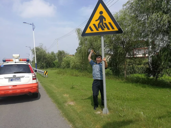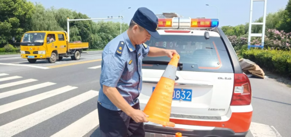 烈日炎炎,海安执法大队执法人员加强道路巡查,矫正路标,清除路面障碍、污染,劝导路边摊点,确保道路安全畅通。