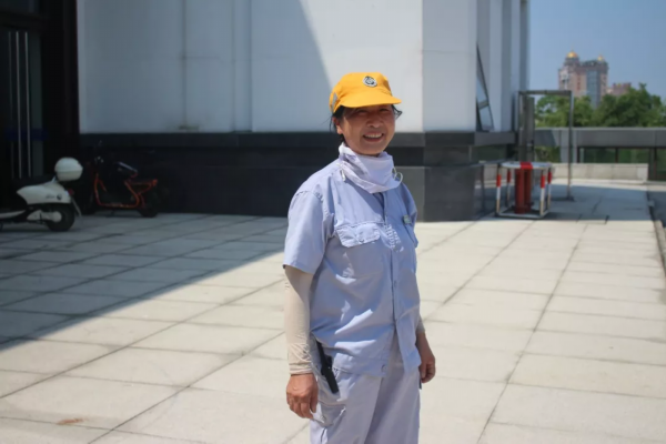 她是火车站前小编偶然拍到的一位站前职工,顶着烈日,保障火车站门前的秩序和清洁。