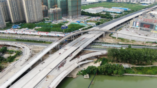 八亭桥立交设计为“Y”型定向型枢纽立交。不仅连接了延安路、通甫路、翔宇大道等重要市内道路,未来通过高架互通还可以直接到达京沪高速和高铁东站。目前,该标段下部结构已经完成,现浇箱梁完成98.8%,整体路基路面完成65%,护栏完成73.5%,铺装完成50.6%。
