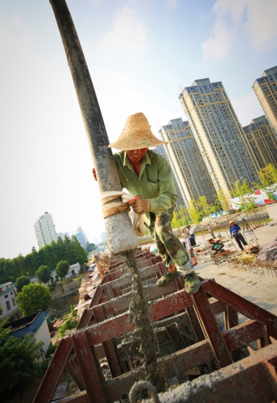 建筑工人在进行混凝土浇筑