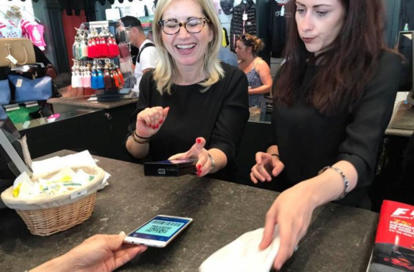 △中国游客正在摩纳哥使用支付宝购物。2017年,支付宝与摩纳哥签订战略合作协议,双方致力于将摩纳哥打造为全球第一个“无现金支付国家”。