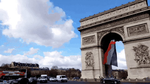 3月25日,巴黎凯旋门正中,巨型法国国旗迎风飘扬。这一天,法国总统马克龙打破惯例,选择在这里为到访的习主席举行欢迎仪式。
