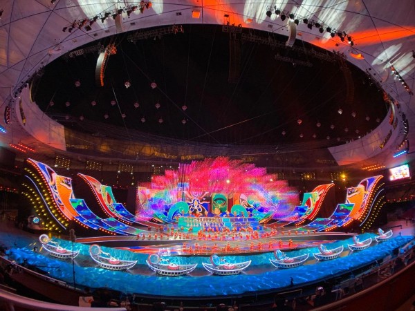 以交响互动大合唱《我们的亚细亚》开场,亚洲文化嘉年华向全球直播。这场亚洲“春晚”开创了多个第一次:第一次组成亚洲联合乐团;由39万枚灯珠组成的空中悬吊灯矩阵,是世界上最大的三维LED灯矩阵;首次尝试在鸟巢这一巨型舞台呈现裸眼3D技术。