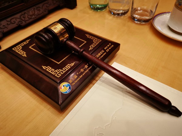 △习近平宣布圆桌峰会开闭幕时所敲的木槌。(央视记者张晓鹏拍摄)