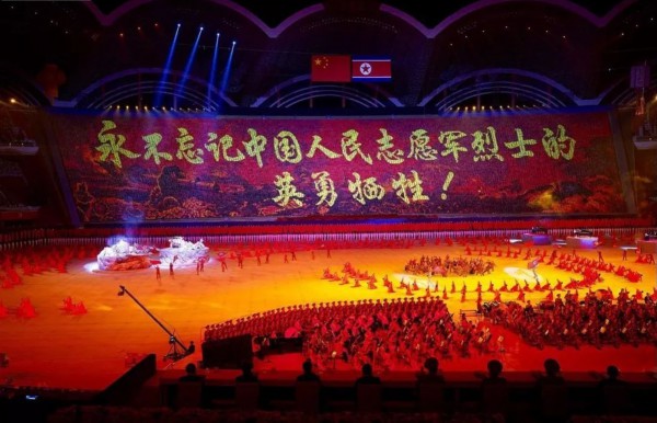 20日晚,习近平夫妇在金正恩夫妇陪同下,观看了朝鲜大型团体操和艺术演出。在这台为习主席专门排演的演出现场,朝鲜三大乐团首次同台献艺。