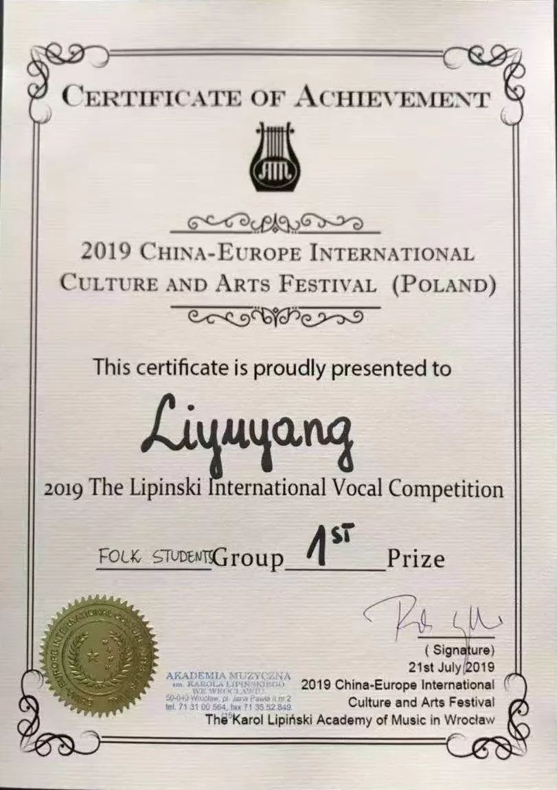 → 今年7月赴波兰参加2019中欧国际文化艺术节再获殊荣。