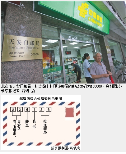 记者了解到,1974年我国开始研究邮政编码,并且在辽宁、上海、江苏等省市进行试点,1980年7月1日,我国推出了全国统一使用的邮政编码。邮政编码采用四级六位编码制,前两位表示省、直辖市、自治区,第三位表示邮区,第四位表示县、市,最后两位表示投递邮局。邵钟林说,我国在设计邮政编码时,每个区、乡、镇都有一个邮政编码。