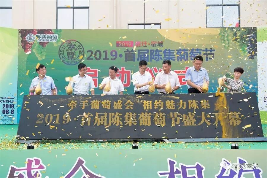当天上午,2019·首届陈集葡萄节在宿城区陈集镇葡萄产业园区广场前举行开幕式。南京农业大学教授、省葡萄产业体系首席专家陶建敏,市农业农村局、宿城区相关领导,陈集镇乡贤、种植大户及企业家代表近500人共享一场美味和文化交融的盛宴,品味“陈集葡萄”的果鲜与甜蜜。