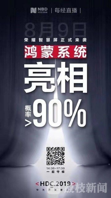 而每日财经的直播海报则直接表示,荣耀智慧屏搭载鸿蒙系统的概率大于90%。