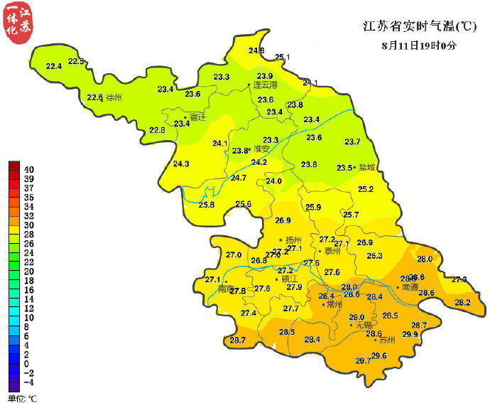 明晨最低温度:淮北地区23℃左右,其它地区25~26℃ 明天最高温度:本省淮北地区25℃左右,沿江和苏南地区31~32℃,其它地区29℃左右。