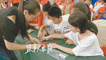 在发放仪式开始前,这些孩子们在红会志愿者的指导下,开心地玩着抢零食和快拼红十字等游戏,欢乐的笑声一阵高过一阵。中国好人、江苏省首届最美退役军人,今年已经95岁高龄的周仁甫爷爷也亲临现场,与孩子们一起开心玩游戏,并希望孩子们认真学习,争做国家栋梁。
