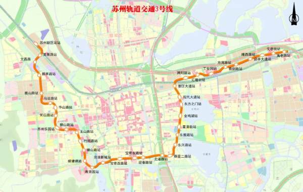 3号线是苏州东西向的一条交通疏导兼引导型的骨干线路,主要连接高新区、吴中区和工业园区等重要组团,与1号线共同支撑城市发展主轴。全线呈“U”字型走向,总长45.3公里,共设37座车站,均为地下车站,西起高新区沪宁城际铁路苏州新区火车站,东至苏州工业园区阳澄湖半岛南侧的唯亭站,途径高新区、姑苏区、吴中区、工业园区4个区。其中,苏州新区站主要途径新区火车站、文昌路站、长亭站、马运路站、狮山路站等共计14个站。