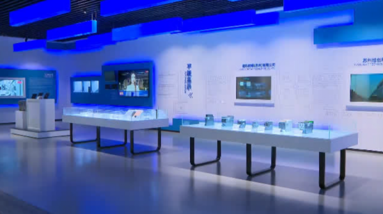 除了黑科技小客车,时隔两年恢复亮相的园区展示中心内还有不少精彩的展品。展示中心现在共开放两层,一楼作为开发建设综合成果展示区,具体分为园区概况、创新发展、协调发展、绿色发展、开放发展、共享发展等板块。二楼则展示了如纳米真空互联实验站等园区现有高精尖科技产业成果。