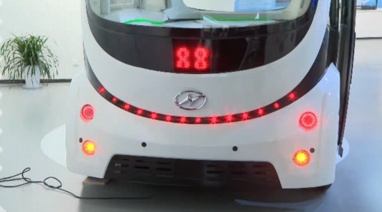 工作人员介绍,这是由一家园区企业自主研发设计的新能源无人驾驶小客车,拥有14项无人驾驶技术。车身周围遍布传感器和摄像头,实现了L4级无人驾驶技术,非常适合在封闭的园区内投入使用。像展厅内展示的这辆电动小萌车,就曾在今年的博鳌亚洲论坛上服役过。