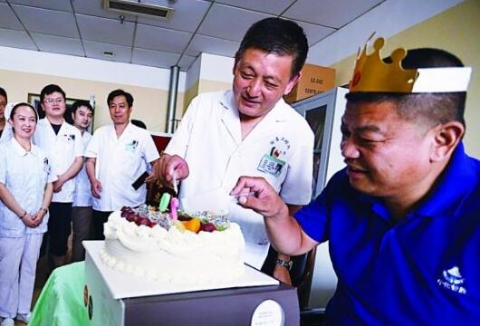 昨天下午,王延生带着家人给王云清教授送上锦旗,锦旗上写着“救命之恩,没齿难忘”。徐矿总医院给王延生送上了生日蛋糕,祝贺他“二十岁”生日快乐。