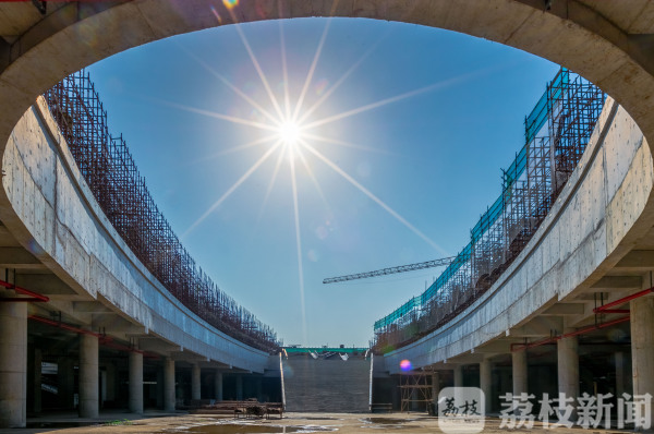 在吴中太湖新城苏州湾畔,一个椭圆形的大水盘吸引了不少人的目光,网格状的结构充满现代感,盘中水皆引自太湖,在在阳光的照射下波光粼粼,格外好看。它其实是地下空间一个最大的天窗——作为全国首个绿色三星、单体量最大的地下空间,吴中太湖新城地下空间北起友翔路、南邻苏州湾,占地面积150亩,总建筑面积为30万平米,地下一层为商场,地下二、三层均为地下停车库。项目预留了与苏州轨交4号线苏州湾北站的对接通道,太阳能光伏发电组、综合能耗监控系统等一系列绿色建造技术也在项目中得到推广应用。目前,这一工程已经在进行最后的机电安装和装饰阶段,工程计划今年10月底初步完成。