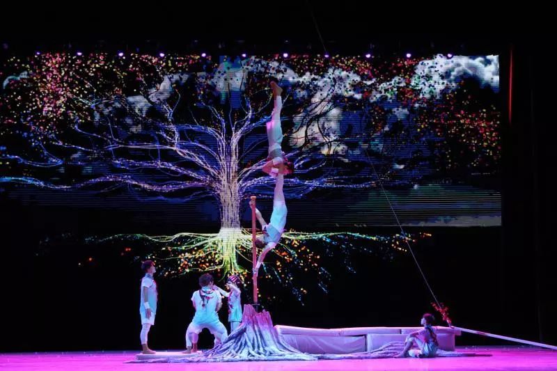 《登上凌寒独自开——集体杆技》创意源于王安石的《梅花》诗,诗人借雪之净洁赞美梅花的冰清玉洁,又用“暗香”点出梅花的内含之美,借梅花颂扬坚强高洁的人格魅力。该作品融合倒立、翻腾、蹬人、抖轿子、钢管舞、杆技等诸多艺术元素,凸显了“建湖杂技”兼容并蓄、刚柔相济、隽永高雅的艺术特色,相对传统杆技类节目,则更加高难、惊险、多元、优美,表演独特,匠心独运,堪称一绝。
