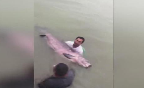 2017年7月23日,钓鱼爱好者肖乐在云龙湖西湖,钓上一条150斤左右的大鱼,最后决定将大鱼放生。