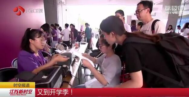 江苏台记者 王尧:“这里是南京大学,今天这个校园即将迎来9000多名新生,今天南京大学的报到现场,还开通了这样一个绿色通道,给学生们提供更加多元、更加便捷的资质服务。”