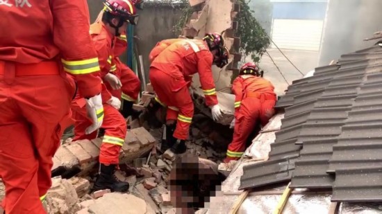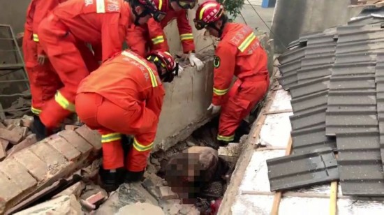 今天早上,常熟尚湖消防中队接到报警,一名老人被困在废墟中,消防队员赶到后,为了防止二次伤害,采用徒手挖掘的方式,仅仅12分钟就将老人救出。