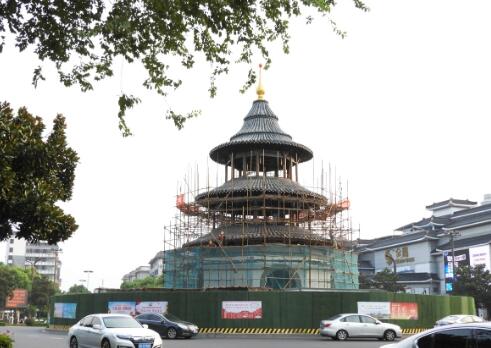 扬州标志性建筑文昌阁修缮工程又有新进展。昨天记者在现场看到,文昌阁大修工程进展迅速,三层屋面已维修完成,上部施工防护网已经拆除,主体开始呈现。