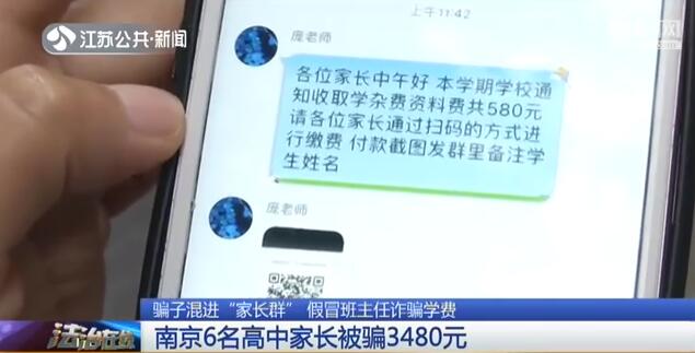 【南京6名高中家长被骗3480元】