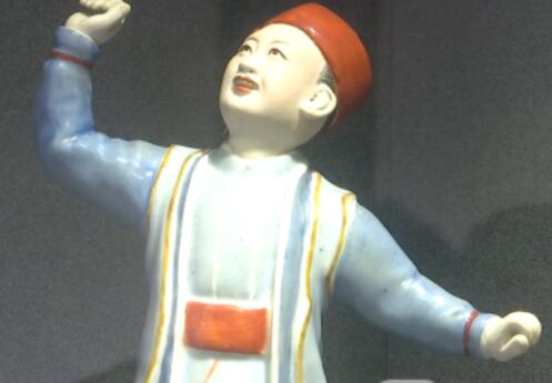 这个瓷雕叫"高山族舞",它的创作年代是50年代中期,装饰手法是色釉加彩,这种手法是在50年代中期之前没有的。