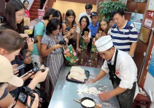 “探访鼓楼老字号”活动中,外国友人和“网红”、“大V”来到金春锅贴、马祥兴、鸡鸣汤包、狮子楼等鼓楼老字号门店观看传统美食展示,评选出自己“最喜欢的味道”,寻访美食背后精湛的制作工艺,传统的文化底蕴以及南京人鲜活的生活态度与文化追求。