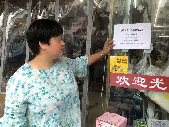 贴在超市玻璃门上的暖心纸条。陈晨摄