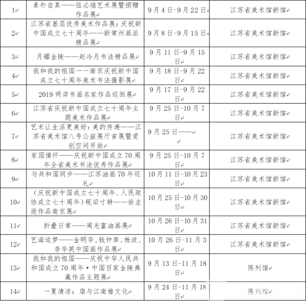 此外,江苏省美术馆还将陆续展出“素朴自真——伍必端艺术展暨捐赠作品展”、“江苏省基层优秀美术作品展:庆祝新中国成立七十周年——新常州画派精品展”、“月耀金陵——赵冷月书法精品展” 等展览。