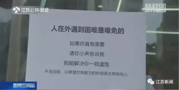 有个顾客告诉记者,潘在芳的做法很温馨,“这也体现了老板娘对社会的爱,我们都要学习,都要做文明的事情。”