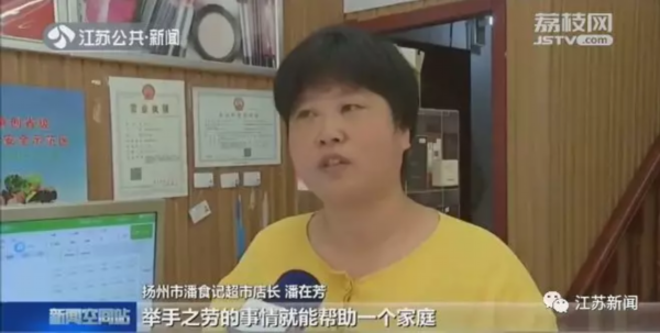 潘在芳的这家小超市毗邻苏北医院,店里经常会遇到求助的病人家属。不管是食品,还是日用品,潘在芳都是能帮尽量帮。